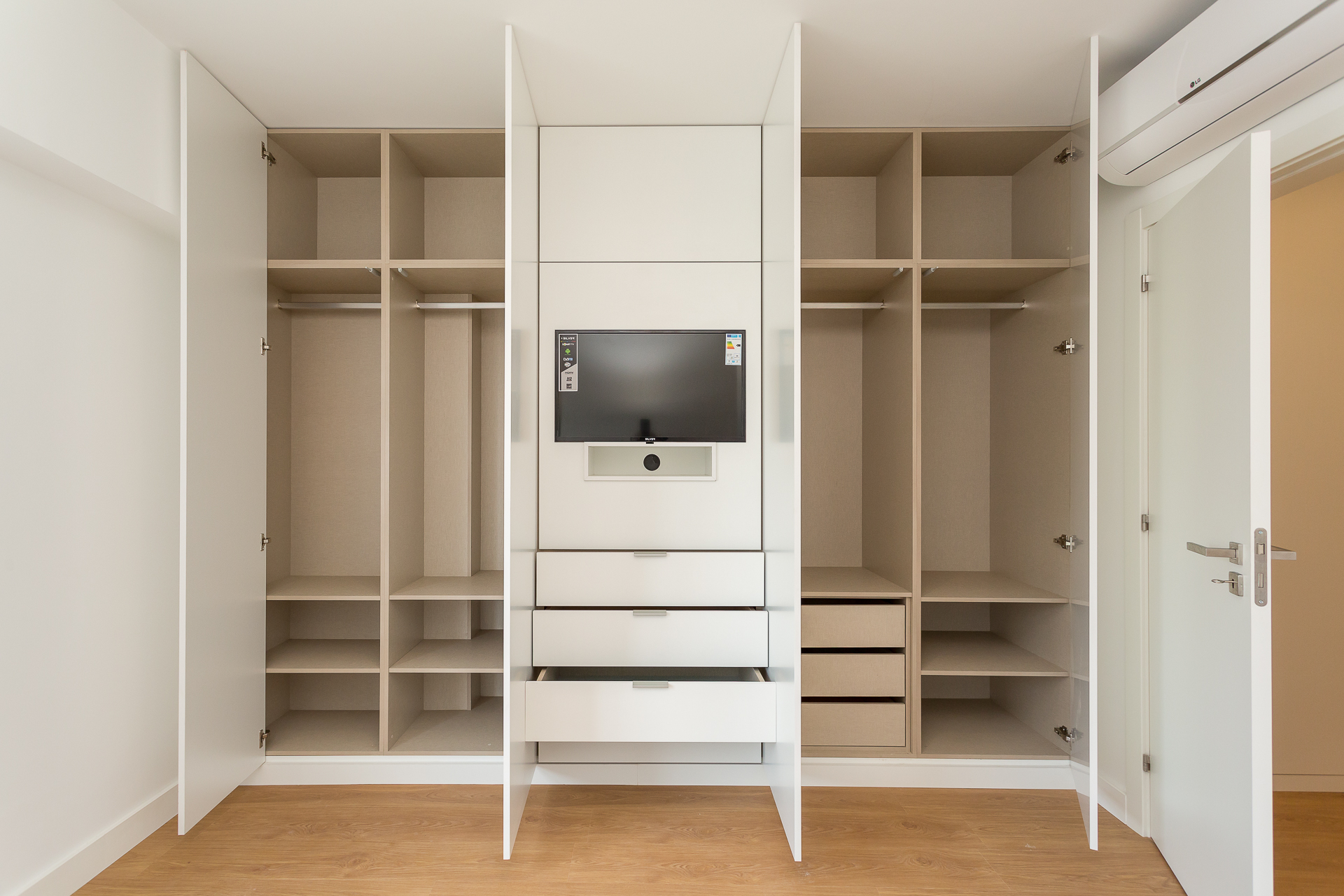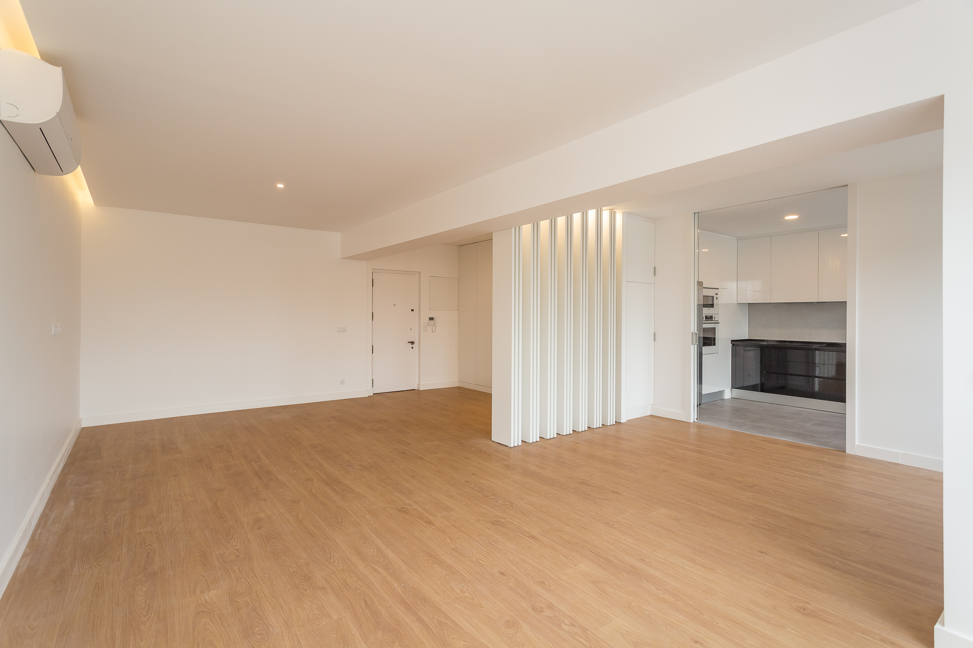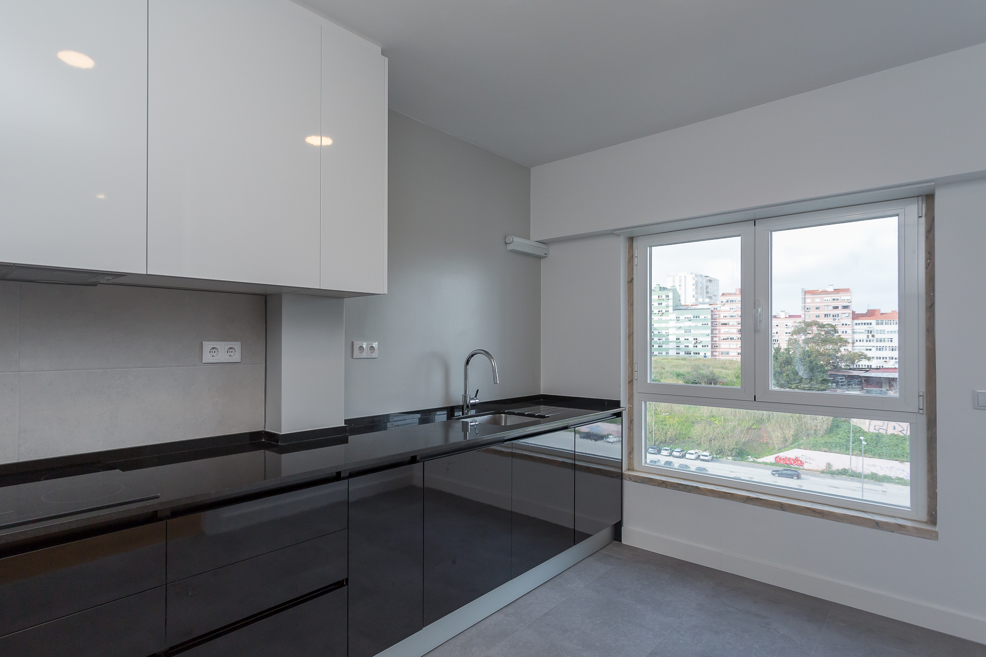 Apartamento T3 composto por uma sala ampla, dois wc’s completos com base de duche, cozinha e dois quartos e uma suite. Quartos e suite com roupeiros embutidos e boa luminosidade.