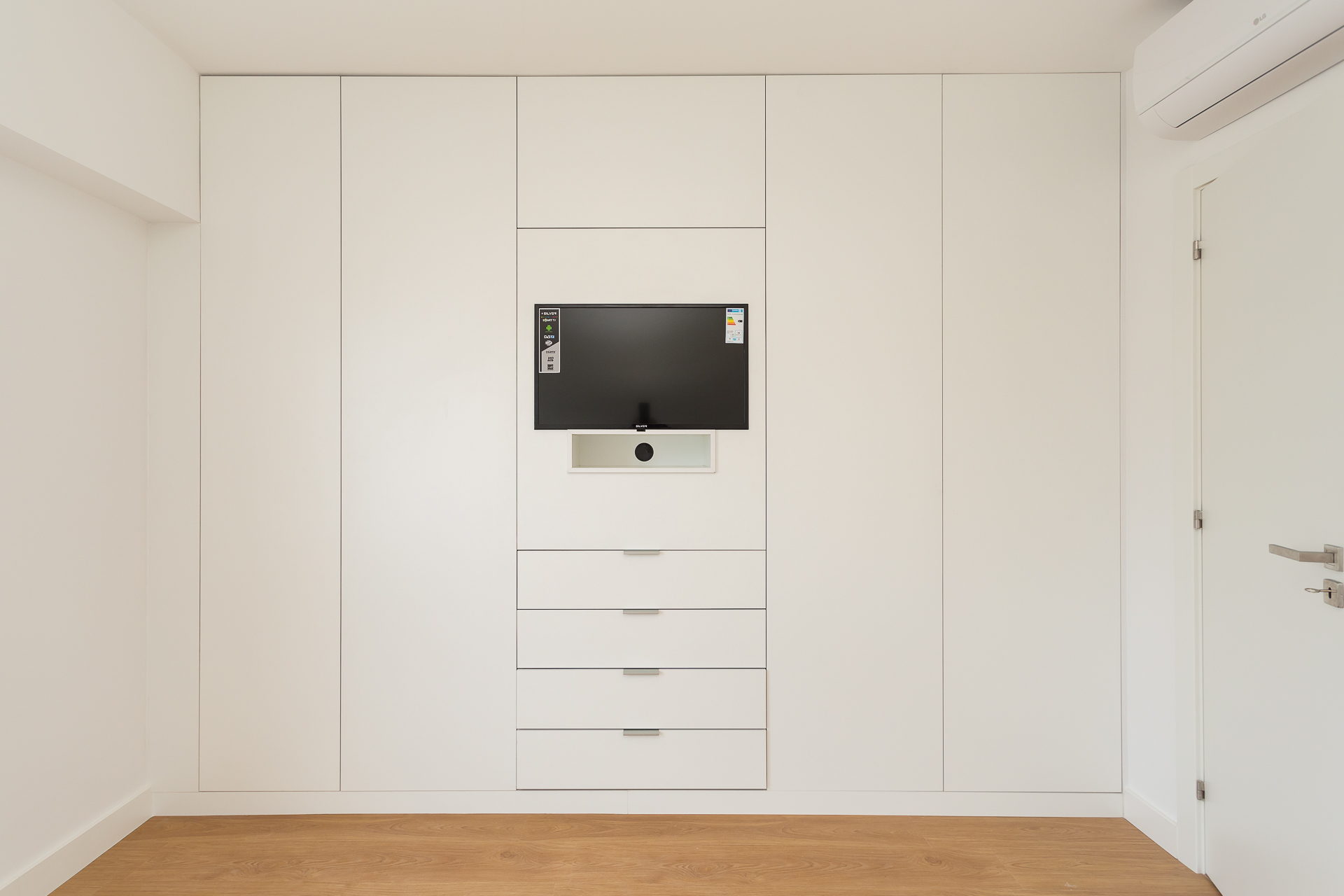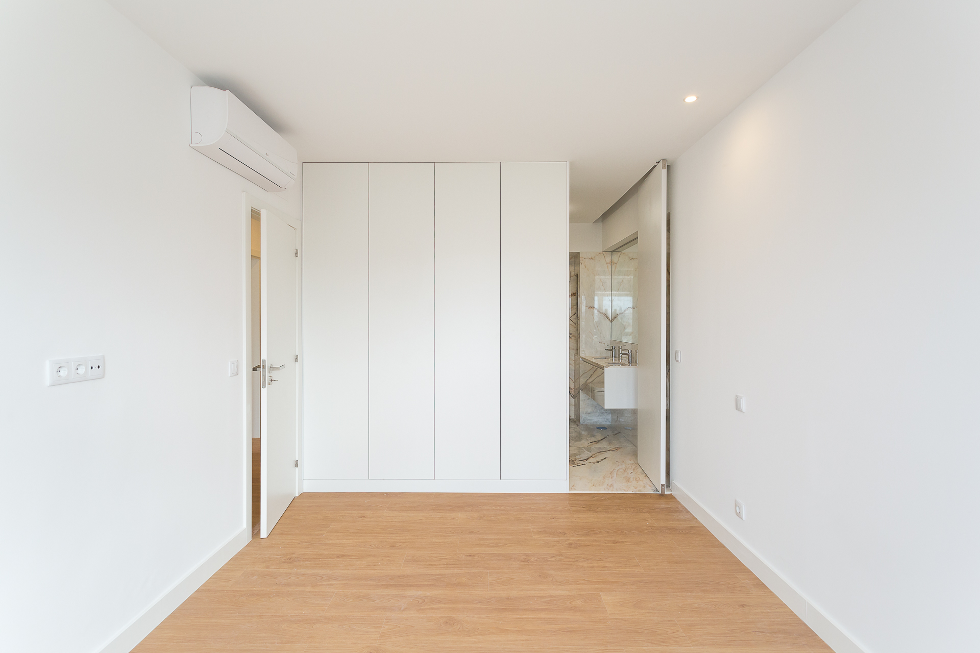 Apartamento T3 composto por uma sala ampla, dois wc’s completos com base de duche, cozinha e dois quartos e uma suite. Quartos e suite com roupeiros embutidos e boa luminosidade.